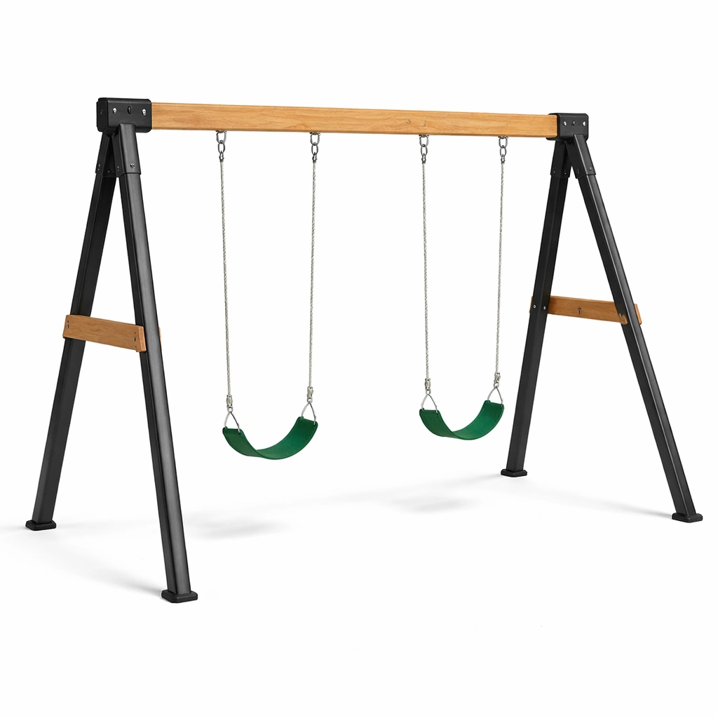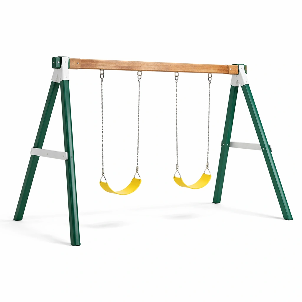 Schaukelset Aus Stahl Und Holz Mit Grünen Sitzen