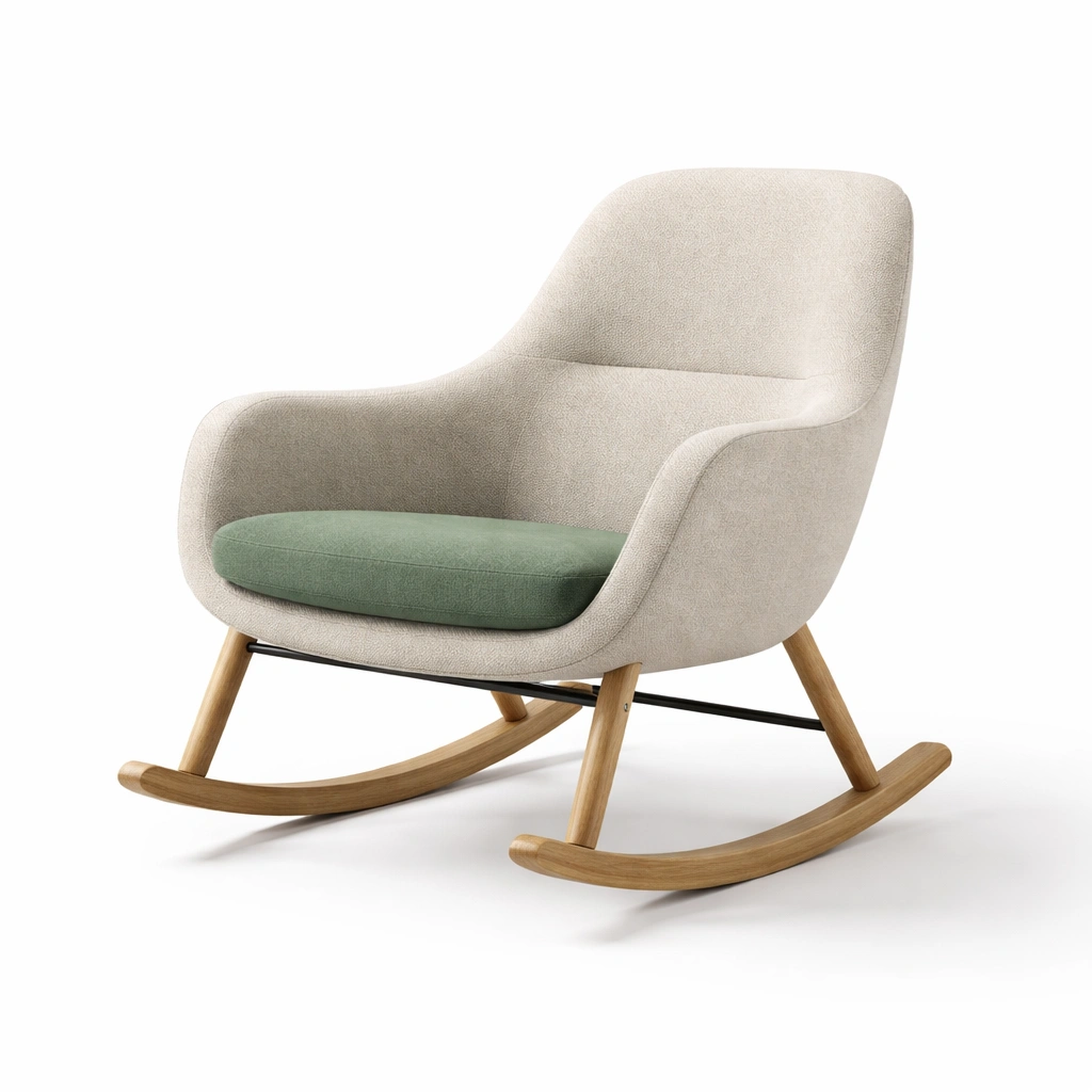 Holzstoff Beige Grün Schaukelstuhl